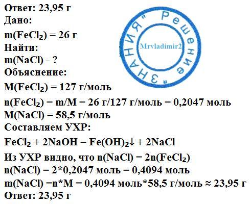 Сколько г соли образуется при взаимодействии 26г хлорида железа (II) с гидроксидом натрия.