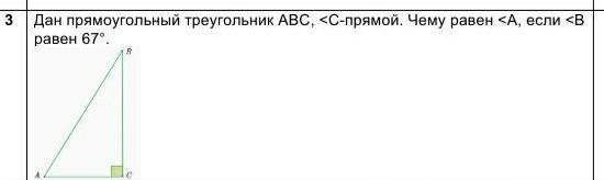 Дан прямоугольный треугольник ABC, <C-прямой. Чему равен <A, если <B равен 67°.