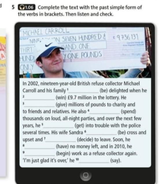 Complete the text with the past simple form of the verbs in brackets. Then listen and check..