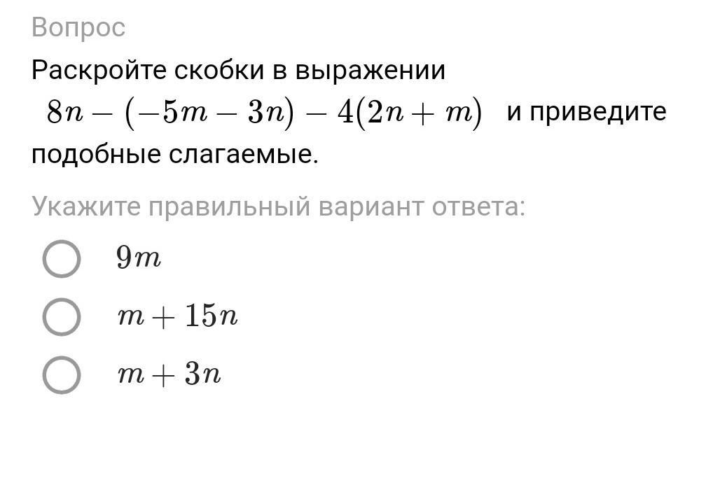 8n-(-5m-3n)-4(2n+m)=8n+5m+3n-8n-4m=m+3n