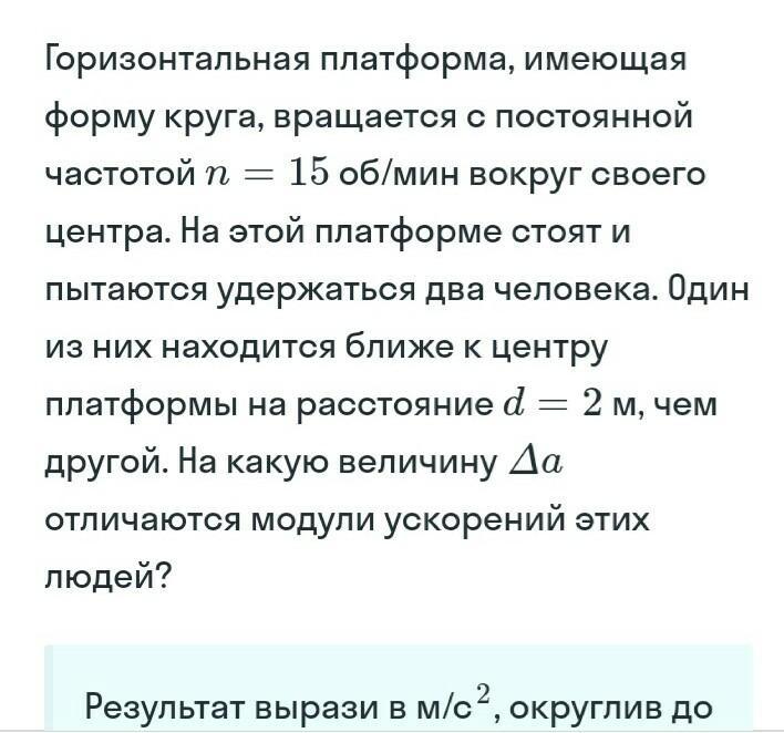 Δa = 4 * 3.14^2 * (0.25 Гц)^2 * 2 м ≈ 4.93 м/с²