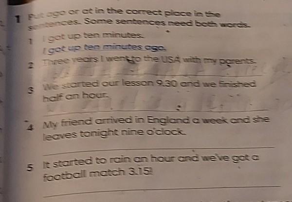 4 my friend arrived in England a week ago and she leaves tonight at nine o'clock