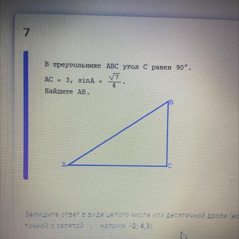cosA=√(1-sin²A)=√(1-7/16)=√(9/16)=3/4