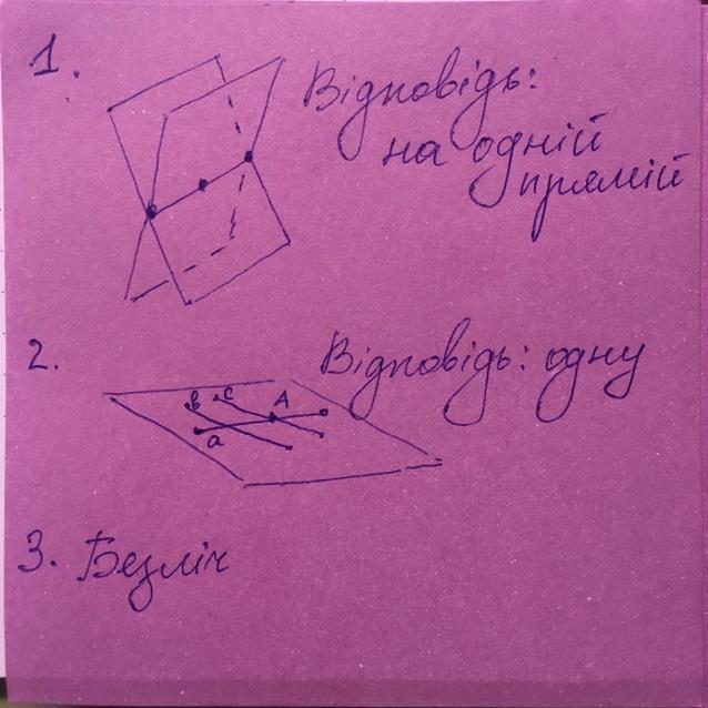 1. Через три точки проведено дві різні площини. Як розміщено ці точки?