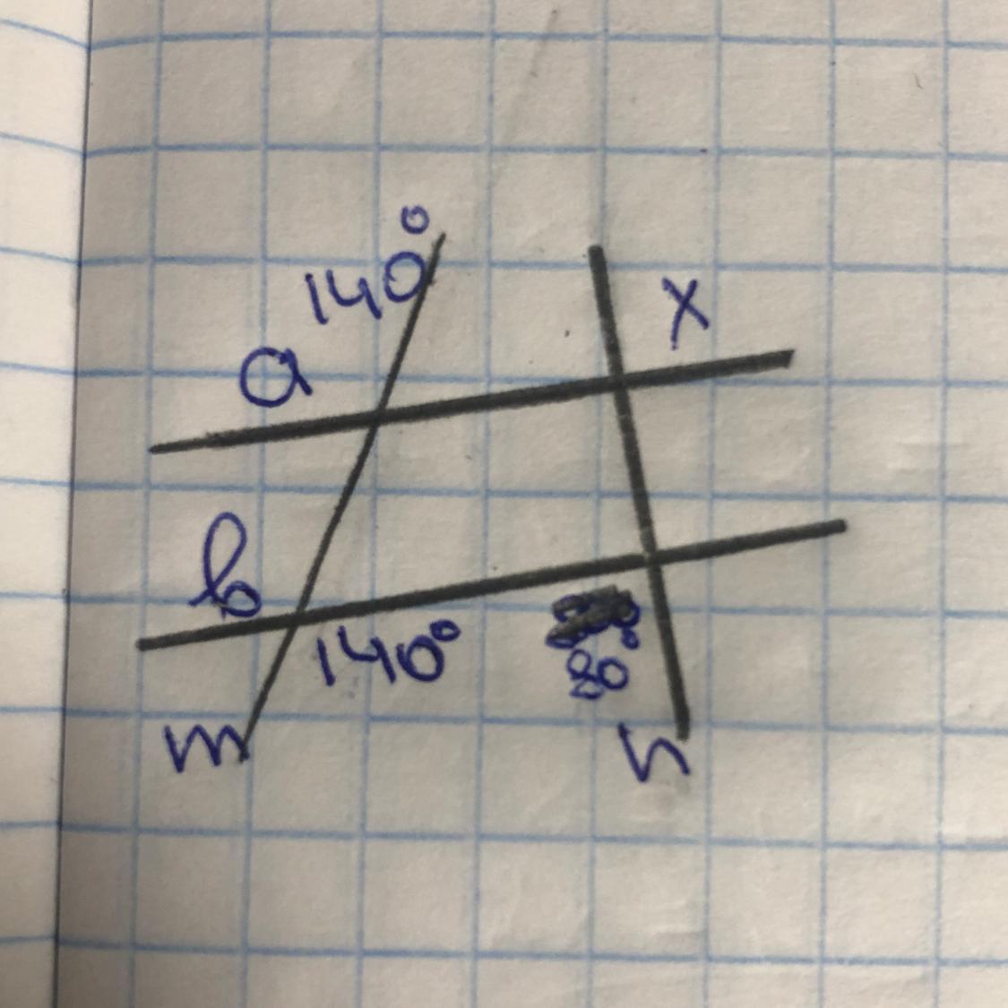 У140 ему вертикальный угол тоже 140(пусть он будет у2, а тот у1)у140(пустьон будет у3) соответственные углы. Следовательно прямые паралельны (признак)