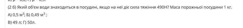 V=(P/g - m)/po=(490/10 - 1)/1000=0.048 м3