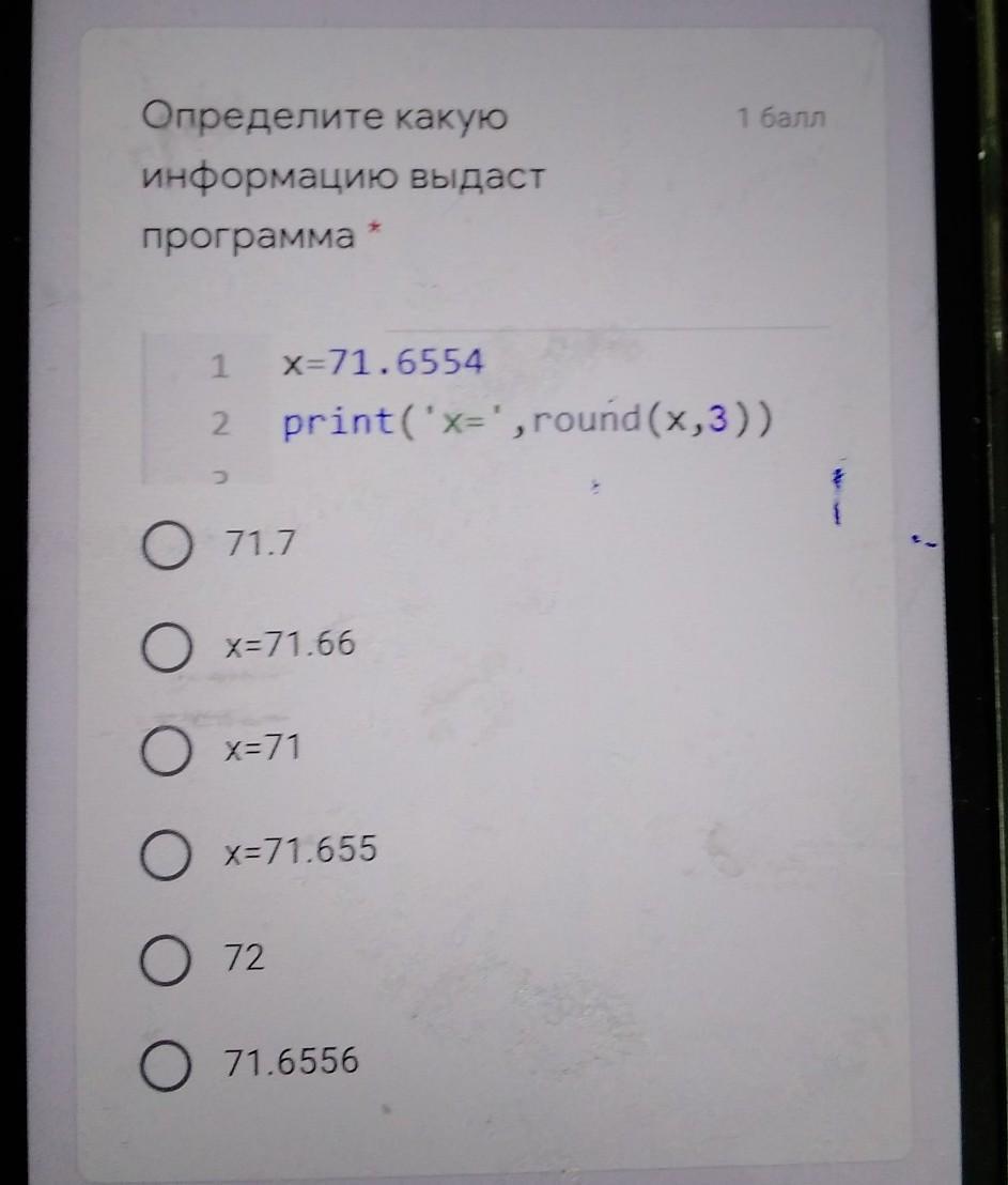 вроде бы Х=71.665 так как есть print 'x=' значит х= точно есть.А х,3 вроде оставить только 3 числа.