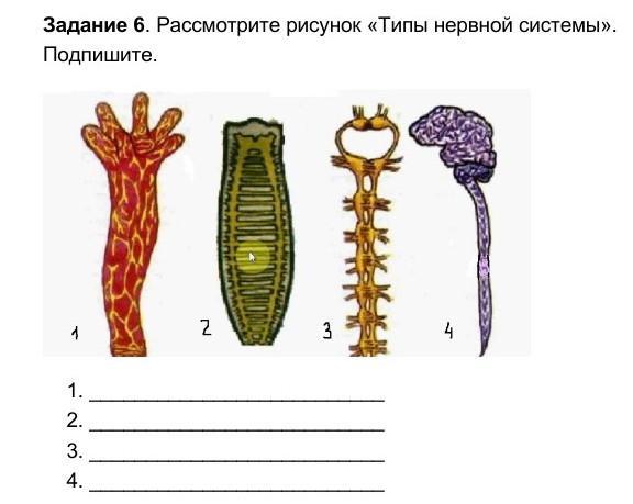 Задание 6. Рассмотрите рисунок «Типы нервной системы». Подпишите.