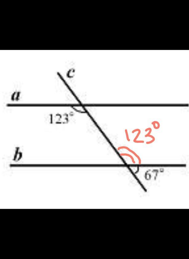 Далее видно, что оба угла в 123° - на крест лежащие => a || b