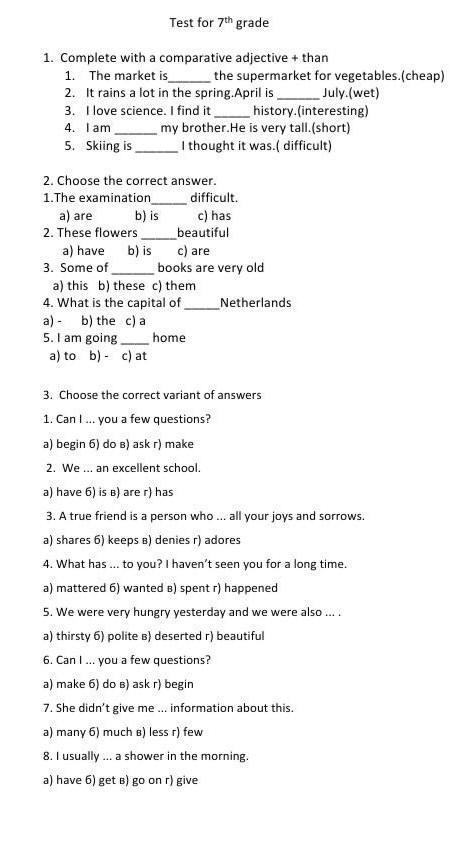 Test for 7th grade
