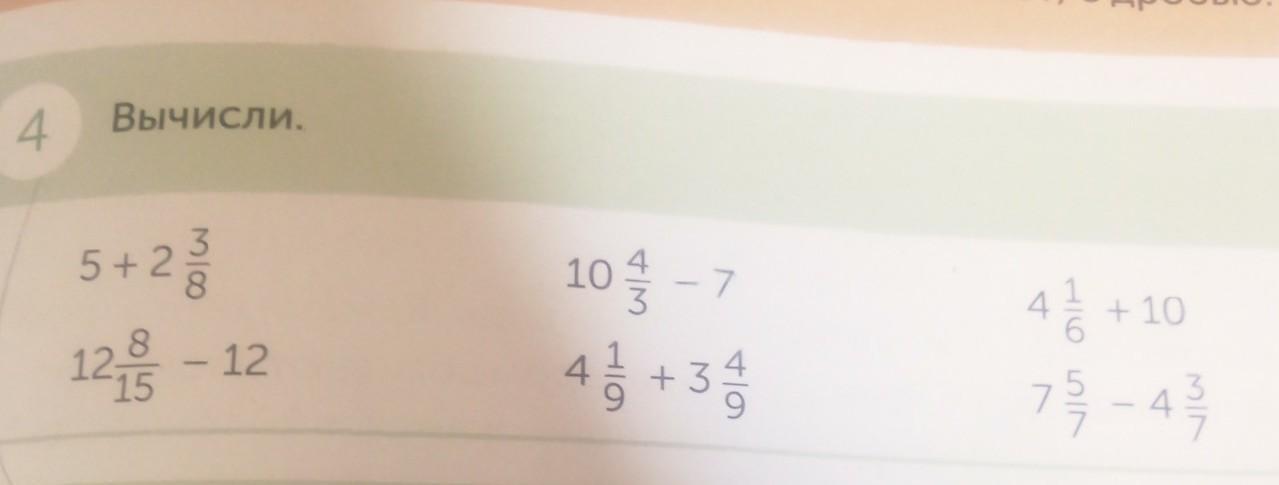 Вычисли 5 + 2 3/8 12.8 15 - 1210 43 - 74 1/9 + 3494 1/6 + 10757 - 437