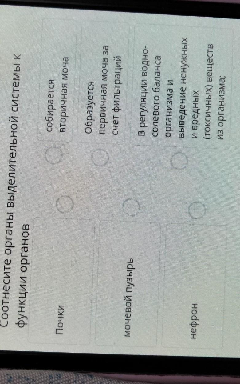Соотнесите органы выделительной системы к функции органов почки мочевой пузырь нефрон собирается вторичная моча образуется первичная моча за счет фильтрации регулируются регуляции водно-солевого баланса организма и выведенных ненужных и вредных токсичных веществ из организма