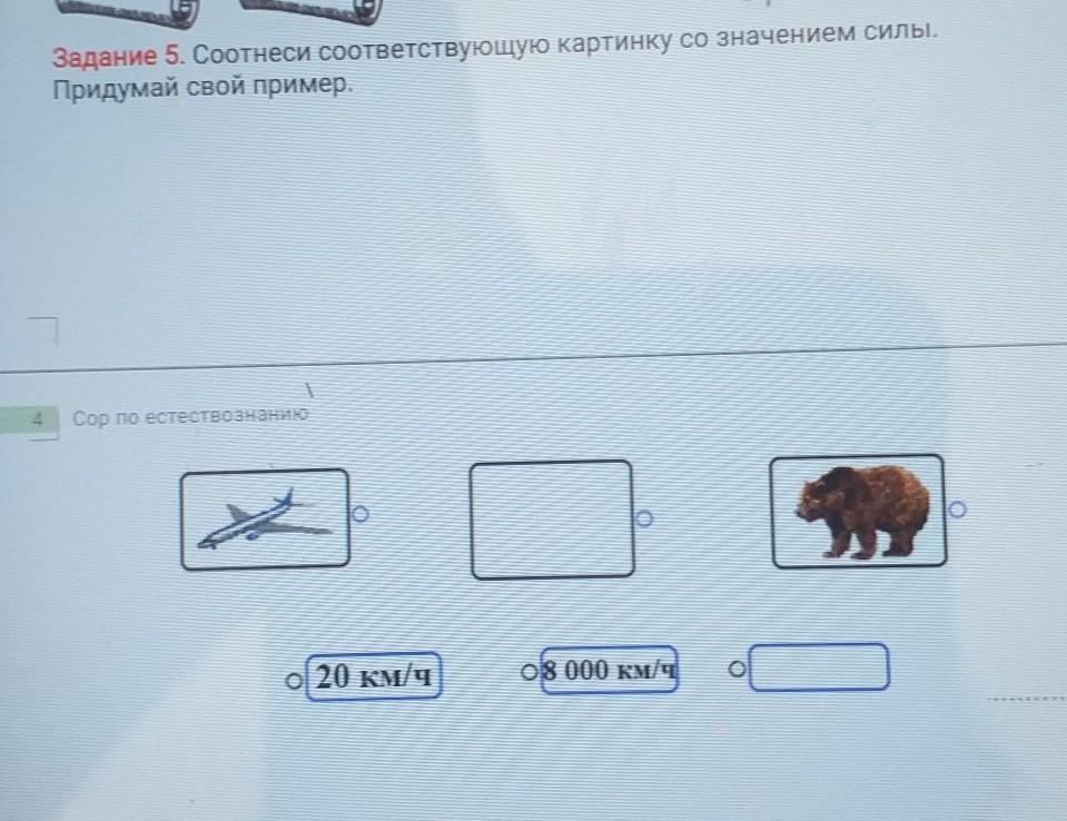 Задание 5. Соотнеси соответствующую картинку со значением силы.