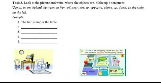 3. The lamp between vase and phone. The chair near the table. The armchair next the table. Объяснение: