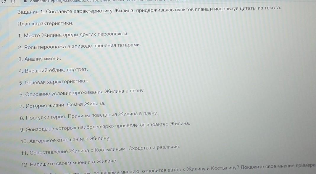 Жилин разносторонне развит и он является мастером во многих делах – он и часы чинит, и куклы вырезает, и лечит татар. Этот человек сумел завоевать уважение и расположение татар. Только благодаря хорошим качествам Жилина, ему удается, с помощью Дины бежать из плена. Жилин храбрый и стремится с достоинством и честью поступать во всех перипетиях своей жизни.