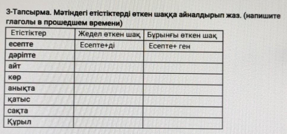 Жедел өткен шақ: дәріптеді, айтты, көрді, анықтады, қатысты, сақтады, құрылды.