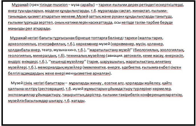 музейлер’’ (тарих, шаруашылық, жаратылыстану,өлкетану музейлері, т.б.),