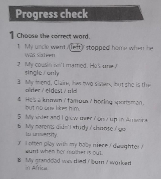1 My uncle went/left/stopped home when he