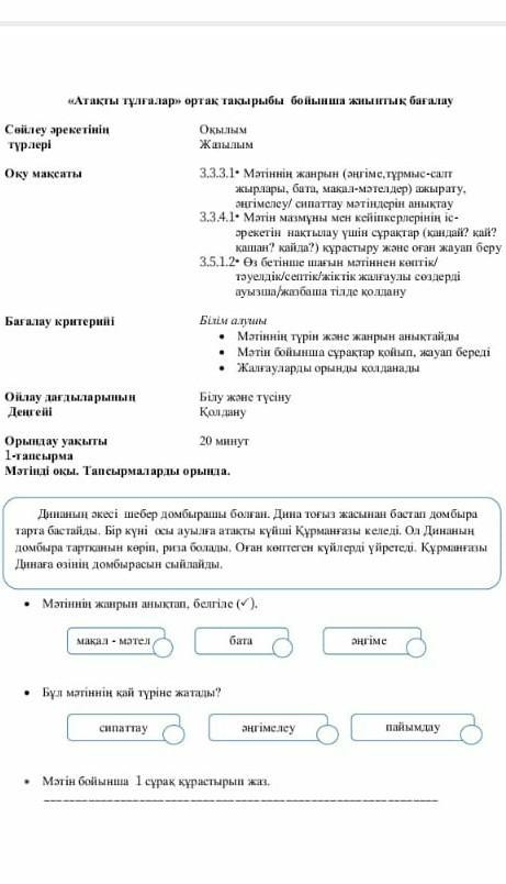 помогите пожалуйста по каз.яз как определить к какому тексту относится описание или или рассказ первое задание не поняли