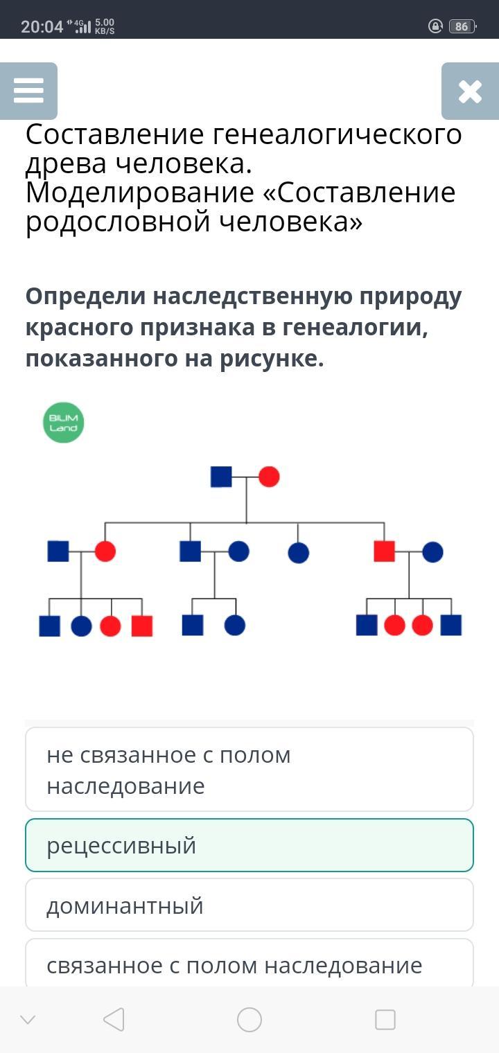 5. Сравните составленное вами древо с представленными в учебнике образцами. Сделайте выводы, удалось ли вам установить тип наследования избранного признака. Если нет, то почему? Если да, то на каком основании вы сделали такие выводы?