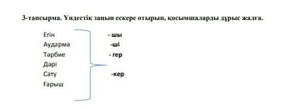 егінші, аудармашы, тәрбиеші, дәрігер, сатушы, ғарышкер.