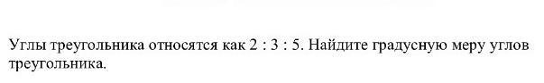 Углы треугольника относятся как 2 : 3 : 5. Найдите градусную меру углов