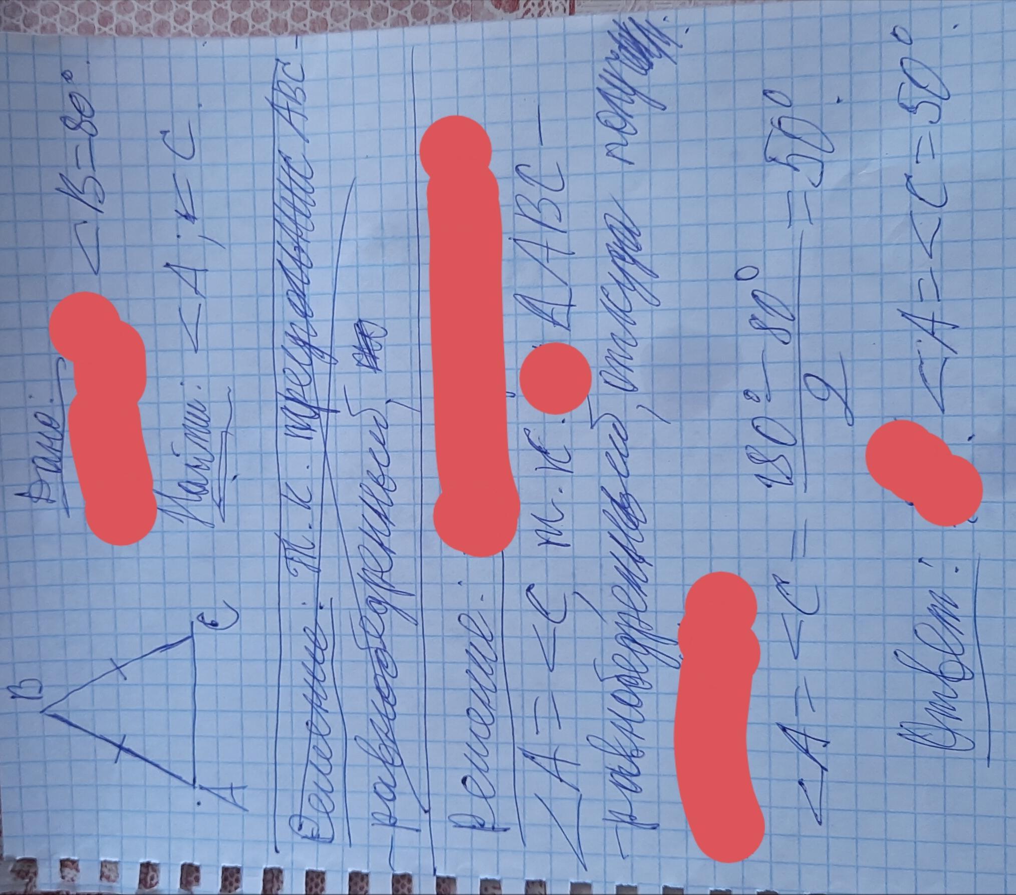 Примечание: В равнобедренном треугольнике боковые стороны равны, а значит, и углы при основании также равны.