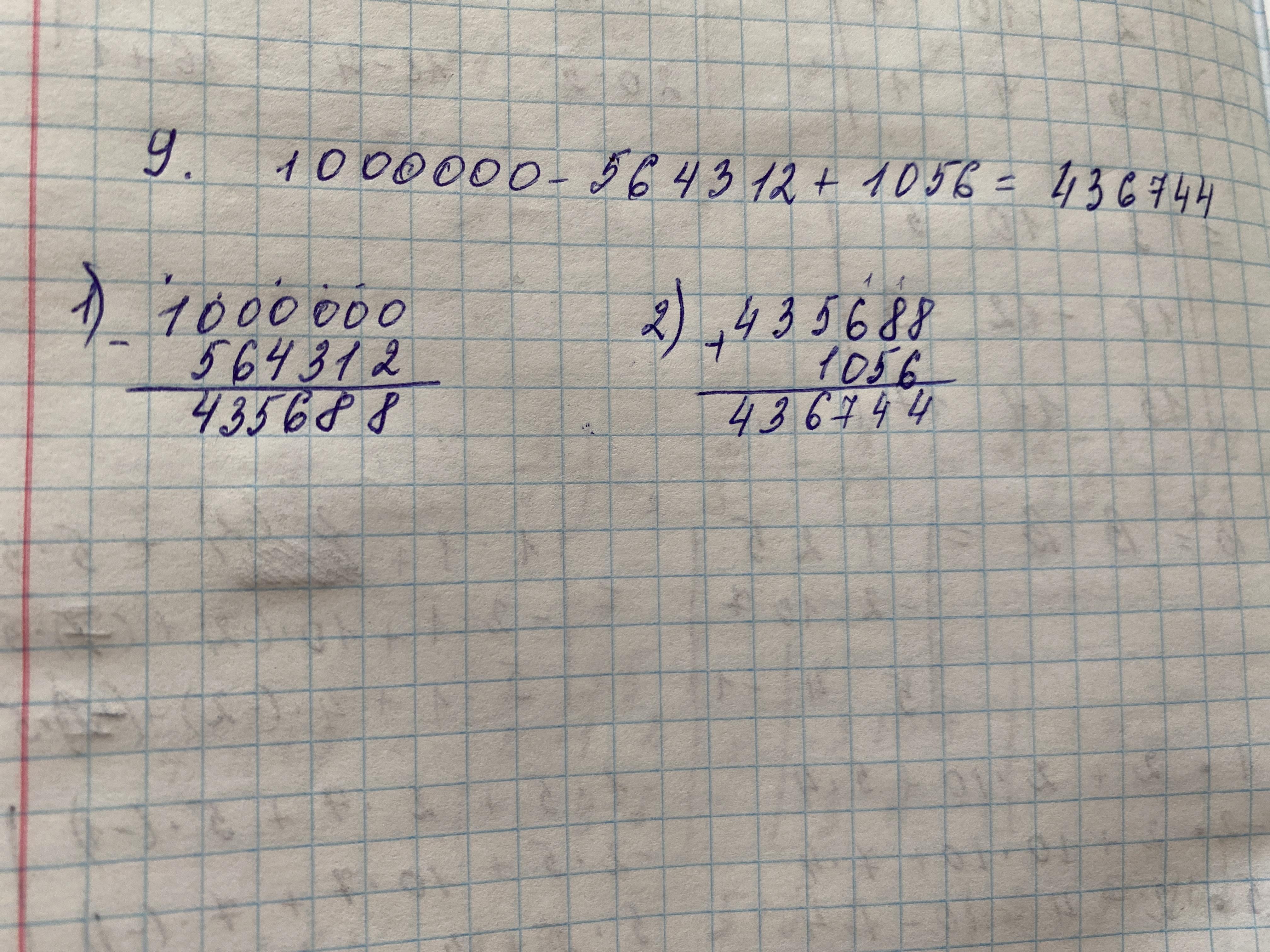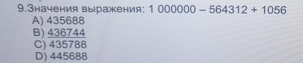 9.Значения выражения: 1 000000 – 564312 + 1056
