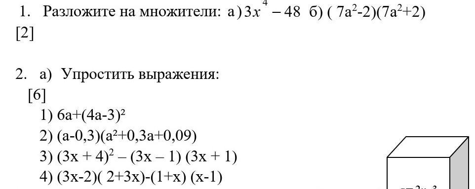 а) 3х^4-48=3(х^4-16) =3(х+2) (х-2) (х-2) (х-2)