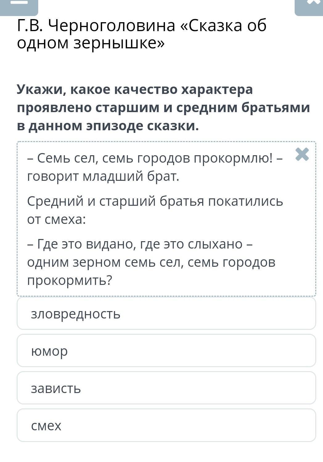 Укажи, какое качество характера проявлено старшим и средним братьями в данном эпизоде сказки.