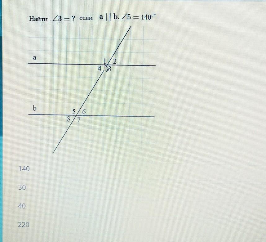 угол3 = угол5 = 140° как накрест лежащие при a||b
