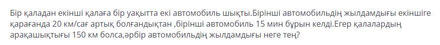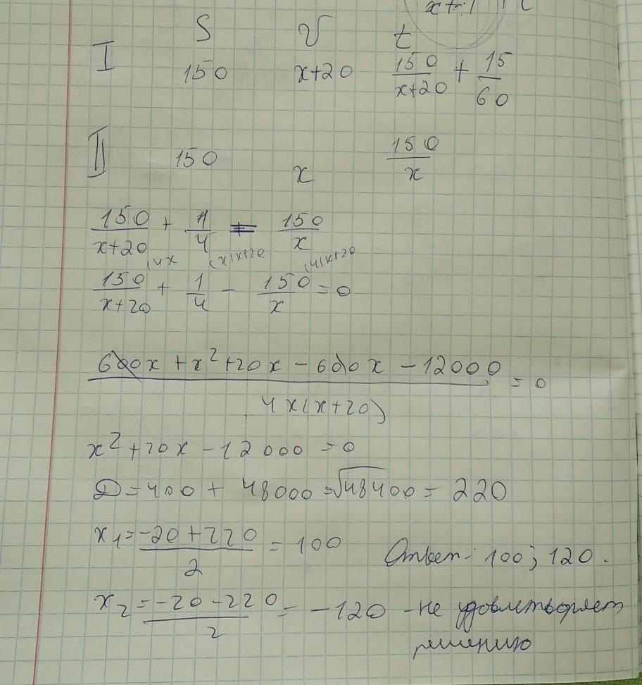 пусть x скорость второй машины, тогда х+20 скорость первой