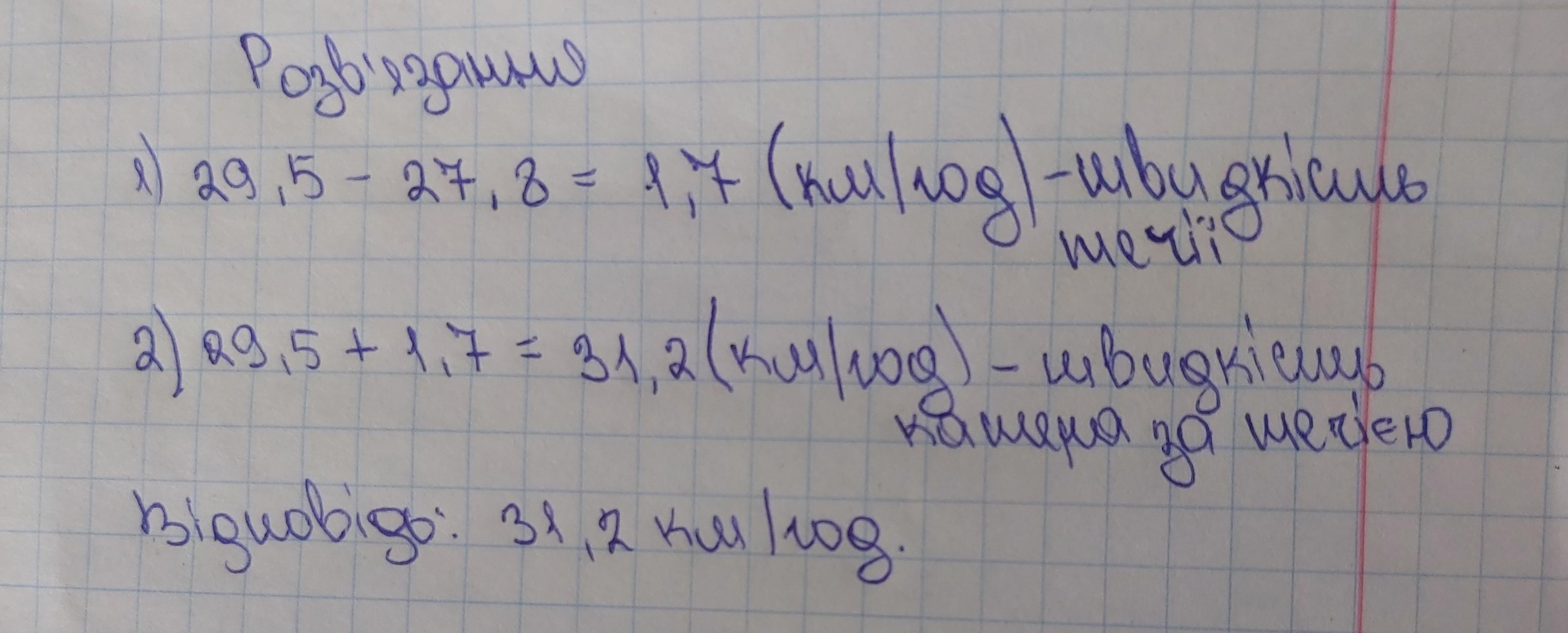 29,5+1.7=31,2км/год, это расстояние которое преодолеет катер за год, если будет всегда плыть по течению.