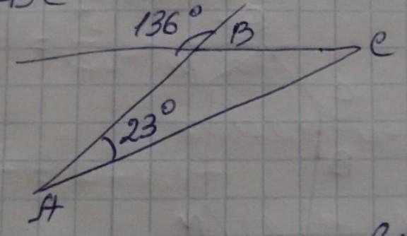 ∡C = 180 - 23 - 136 = 21°