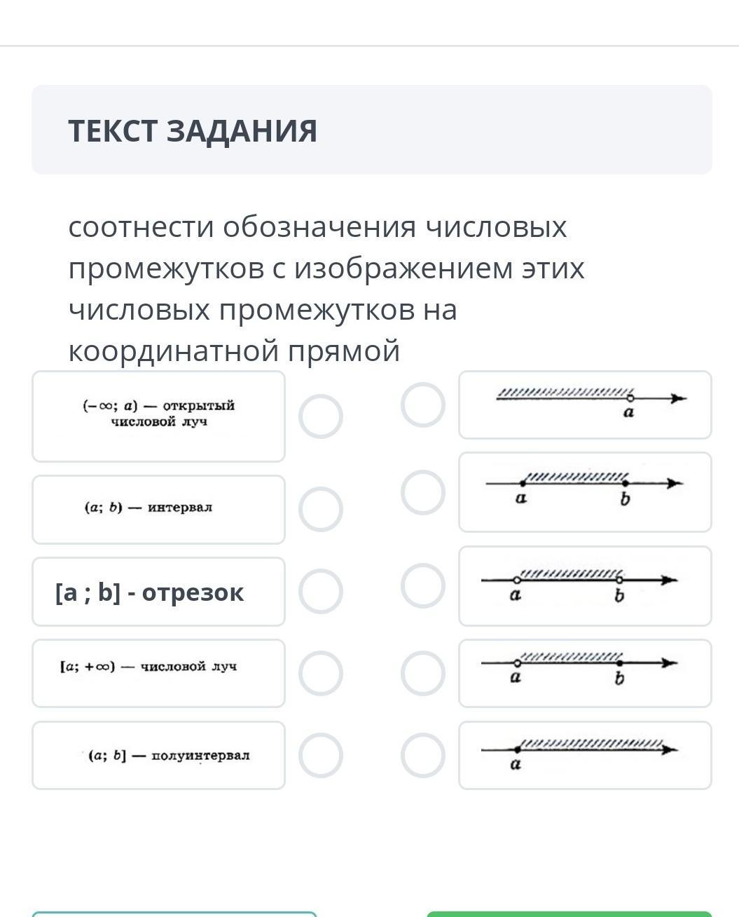 соотнеси обозначения числовых промежутков с изображением этих числовых промежутков на координатной прямой
