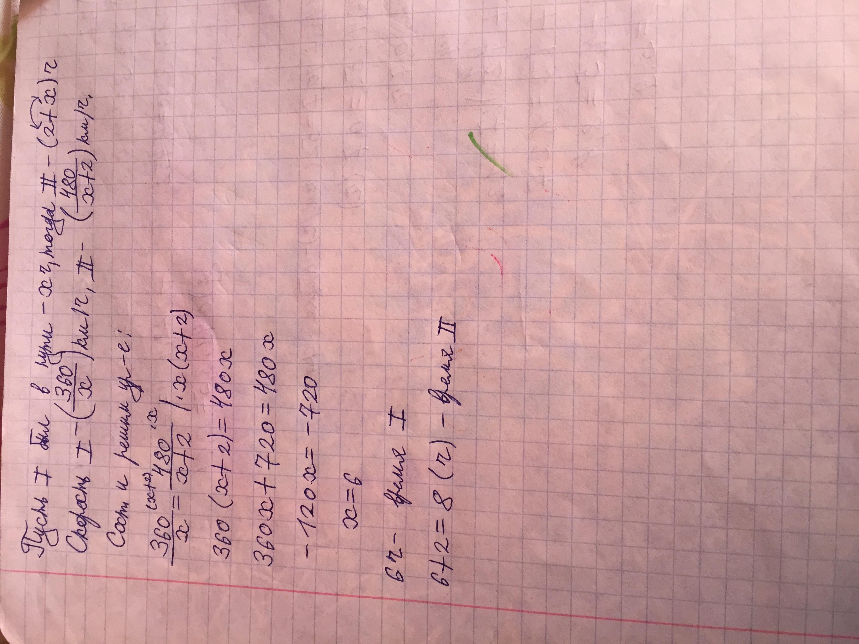 Два автомобиля ехали с одинаковой скоростью. Один из них проехал 360 км, а другой 480 км. Сколько часов был в пути каждый автомобиль, если первый был в пути на 2 часа меньше, чем второй?