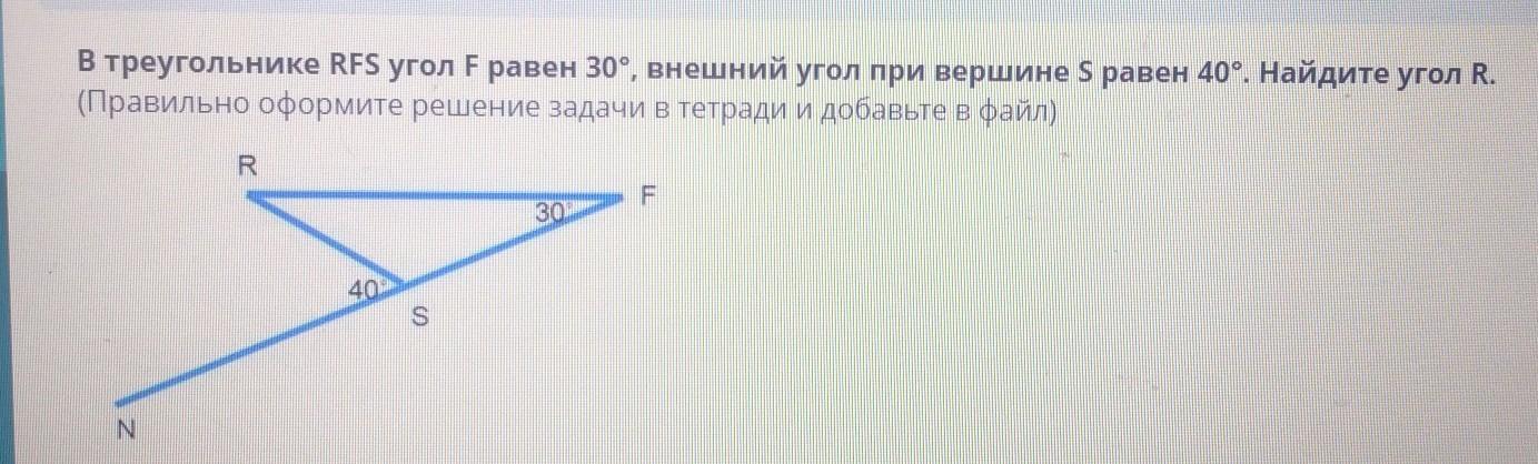 внешний угол при вершине S равен 40 градусов, с углом S они смежные, значит в сумме дают 180 градусов