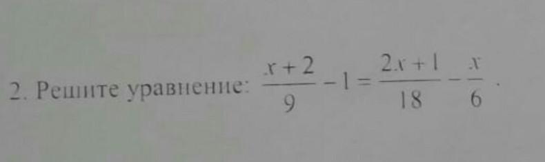 Пошаговое объяснение: сначала находим общий знаменатель это 18 затем получаем 2x+4-18=2x+1-3x известные в одно x в другое 3x=15 x=5 вот правельный ответ