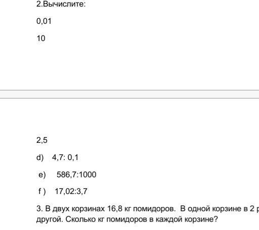 3. В двух корзинах 16,8 кг помидоров. В одной корзине в 2 раза больше, чем в другой. Сколько кг помидоров в каждой корзине?