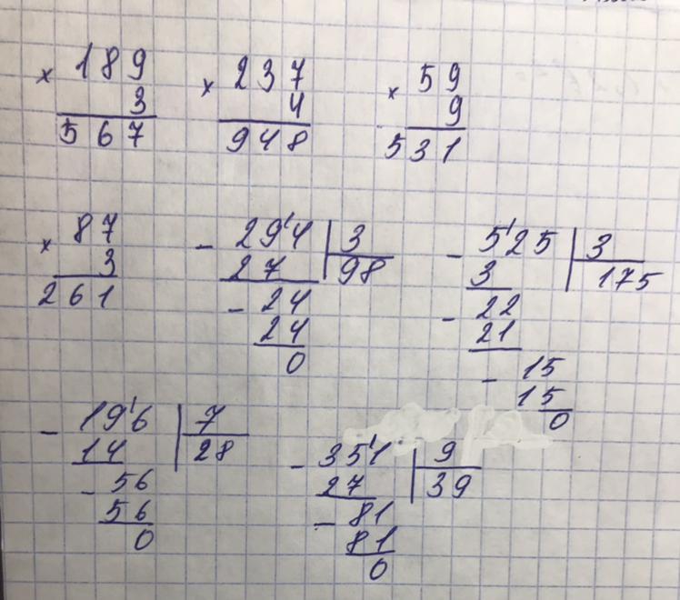 2. Вычисли столбиком. Без проверки. 189•3 237•4 59•9 87•3 294:3 525:3 196:7 351:9
