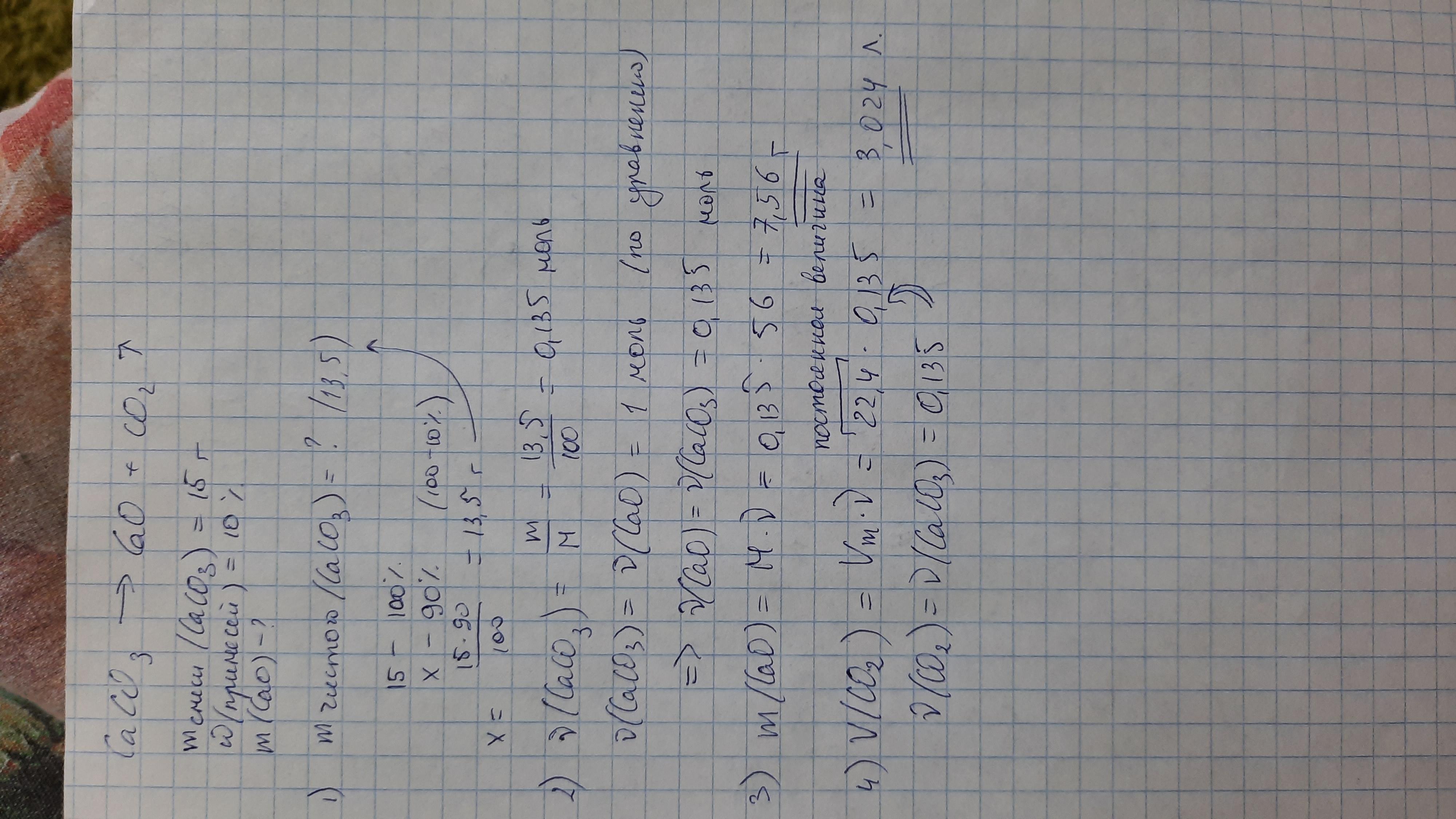 разложении 15г карбоната кальция,