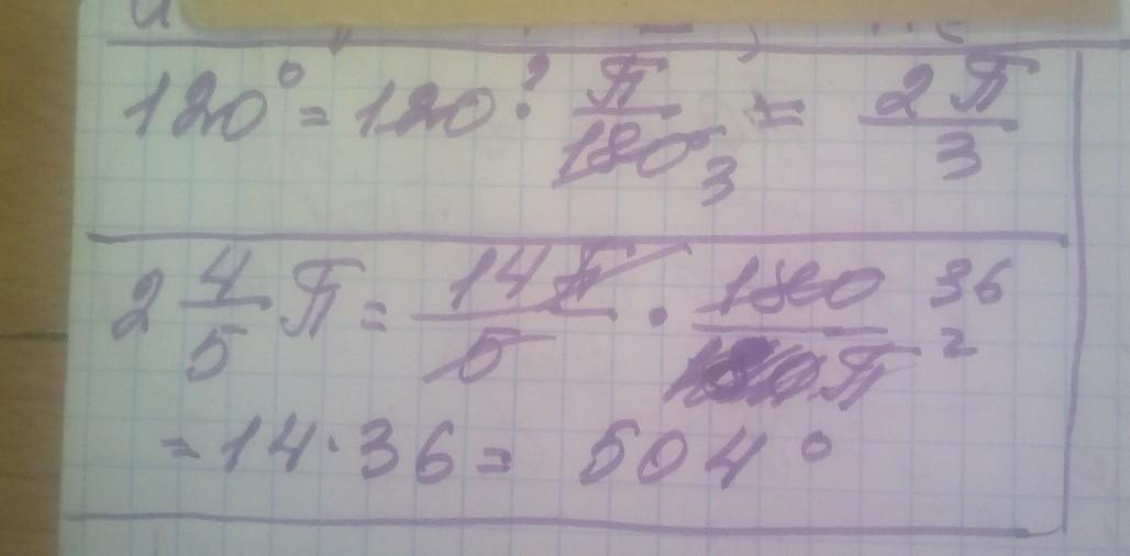 120 градусов-2pi/3 радиан , а 2*4/5*pi -504 градуса