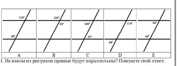 D) угол, который справа от угла 66° равен 114° (180-66=114) => прямые параллельны, т.к. соответственные углы равны