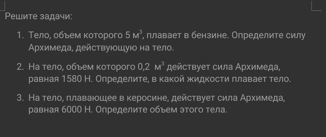 V = Fa/ρg = 6000 / 800 • 10 = 0,75 м³
