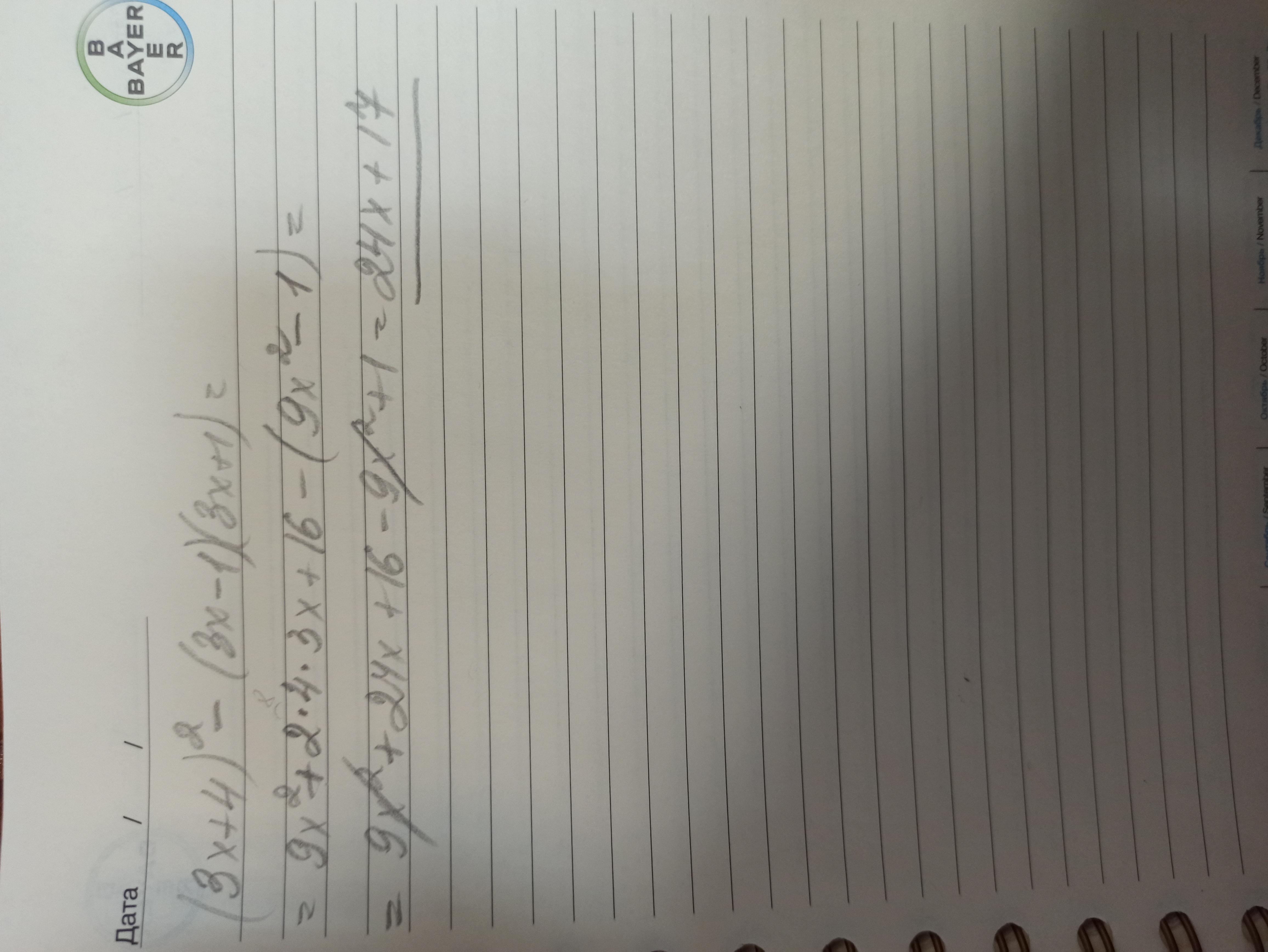 (3х+4)²-(3х-1)=9х²+24х+16-(9х²-1)=9х²+24х+16-9х²+1=24х+17