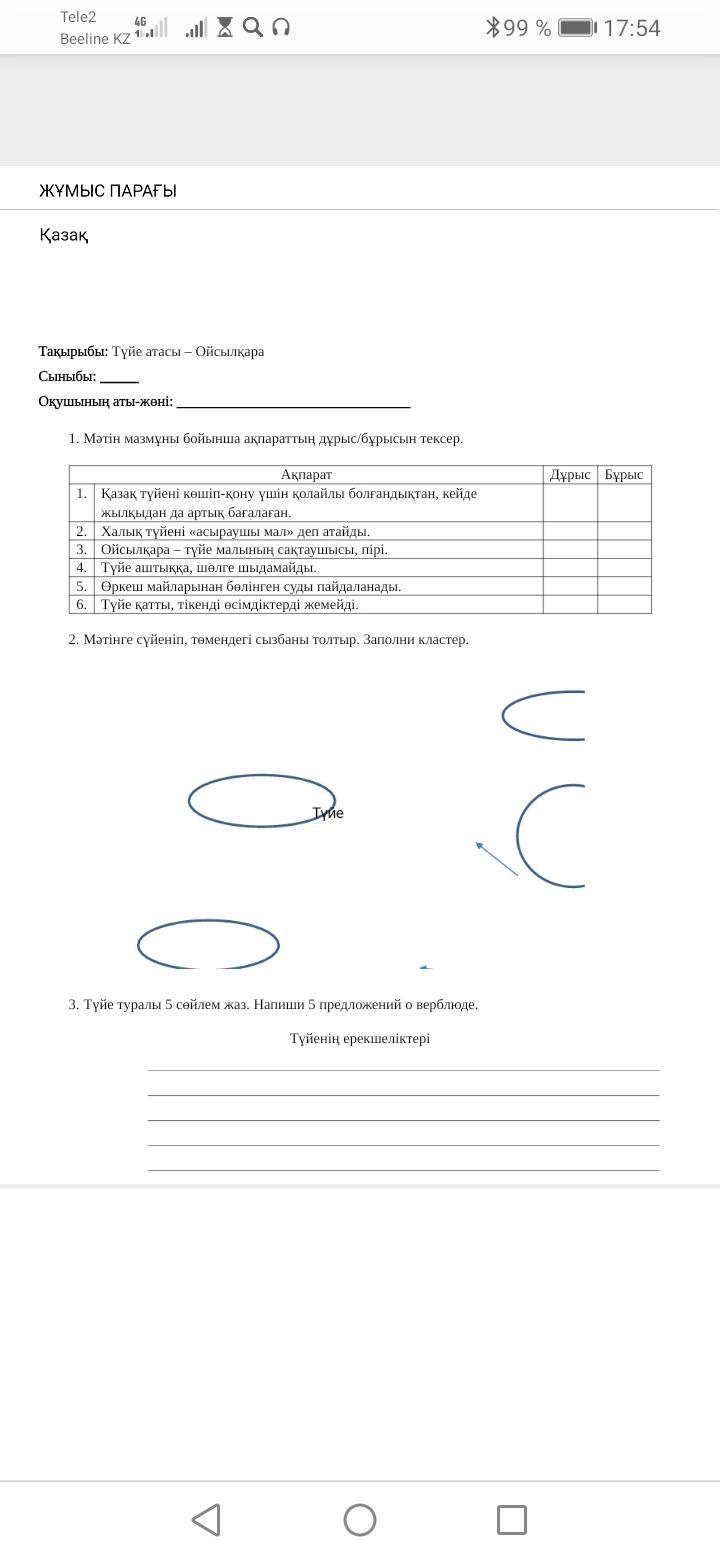 Мәтінге сүйеніп, төмендегі сызбаны толтыр. Заполни кластер.
