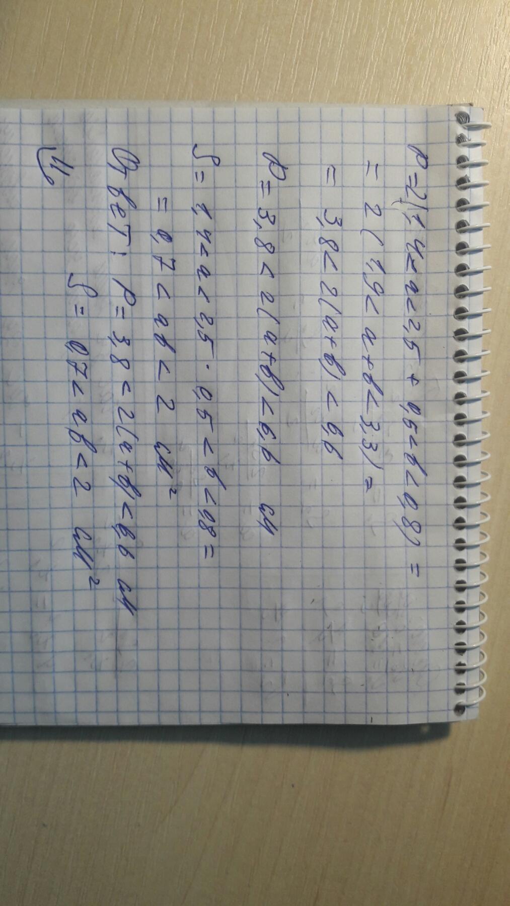 1. Оцените периметр и площадь прямоугольника со сторонами а см и в см, где 1,4< а < 2,5; 0,5< в <0,8