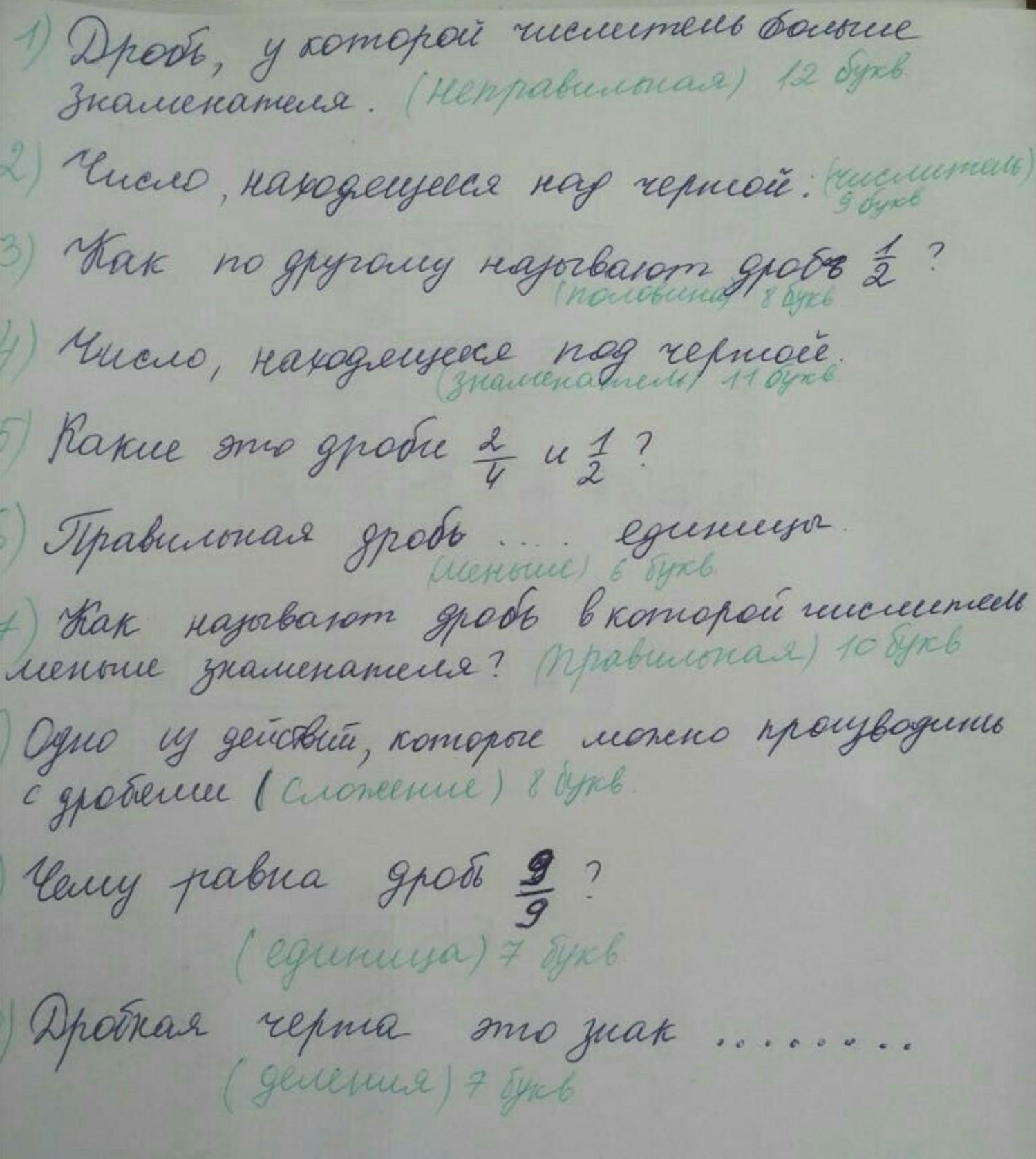 кроссворд по теме "обыкновенные дроби" на первом фоте