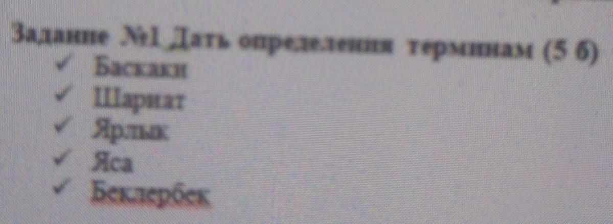4.Яса́, Великая Яса (монг. Их засаг хууль?, — закон великой власти; каз. Ұлы Жасақ (жөн-Жасақ)) — уложение Чингисхана, которое он, по преданию, издал на великом всемонгольском курултае и которое постоянно подтверждалось его преемниками.