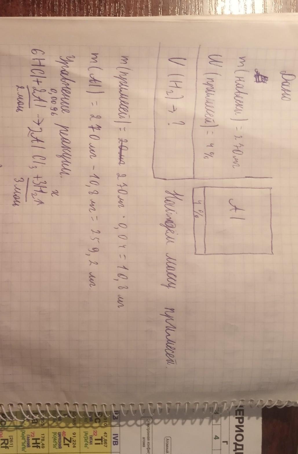 Какой объём водорода образуется при взаимодействии соляной кислоты с 270мг алюминия , примесь 4% . Химия - 8 класс